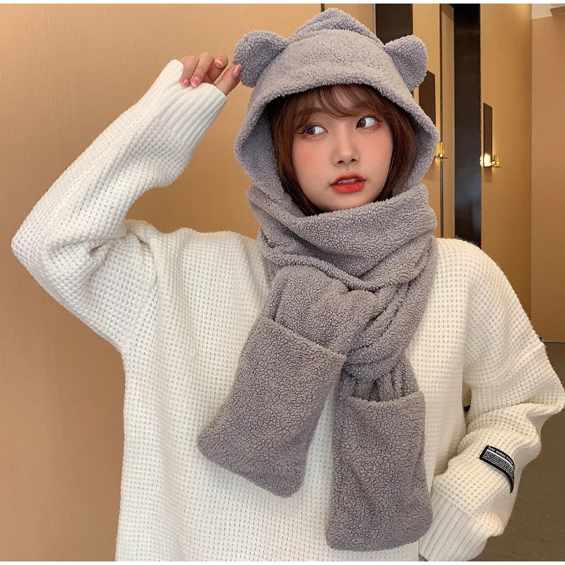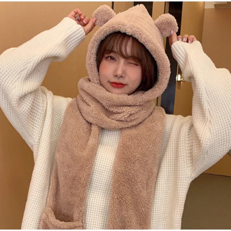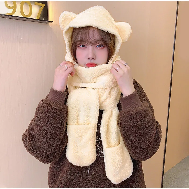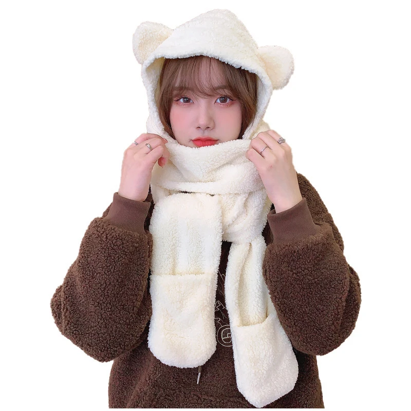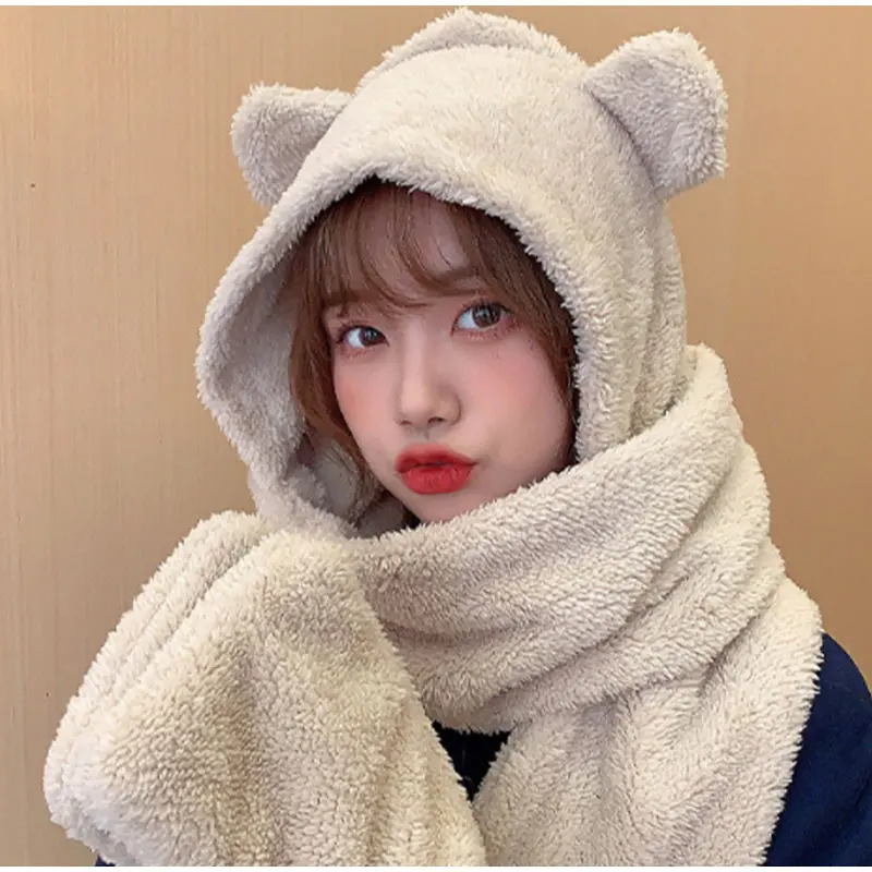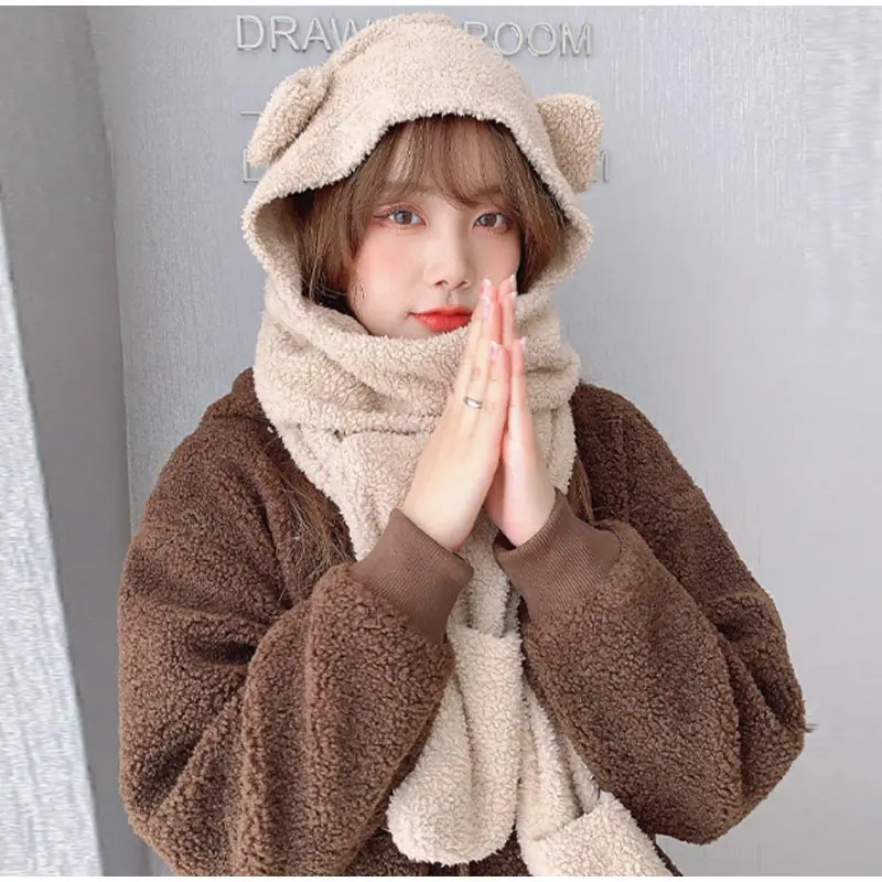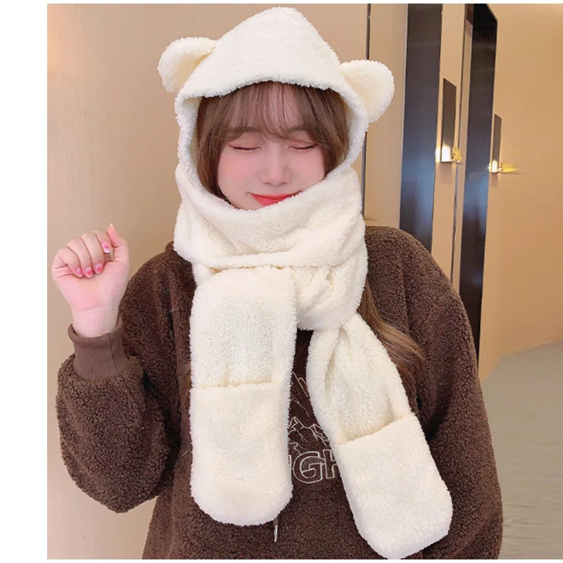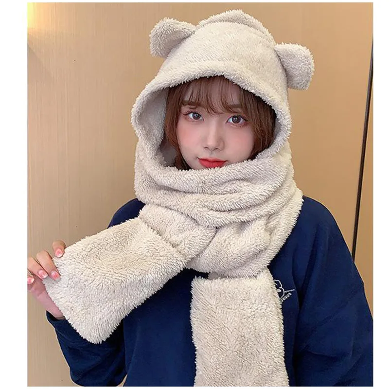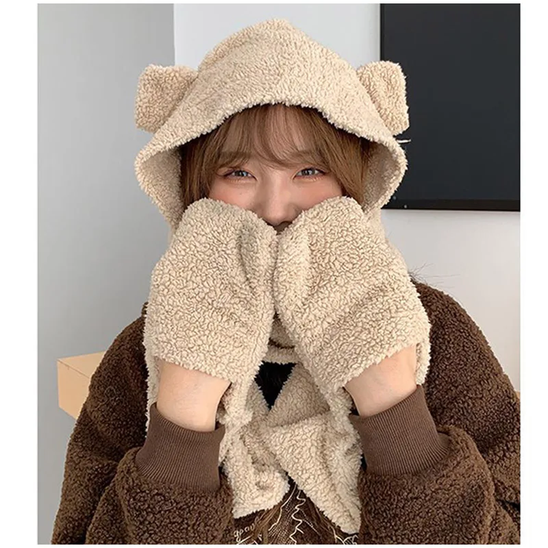 New Solid Knitted Thermal Windproof Scarf Hat Glove 3 Pieces Sets Women 2023 Winter Thick Warm Vintage Female Fashion Shawl