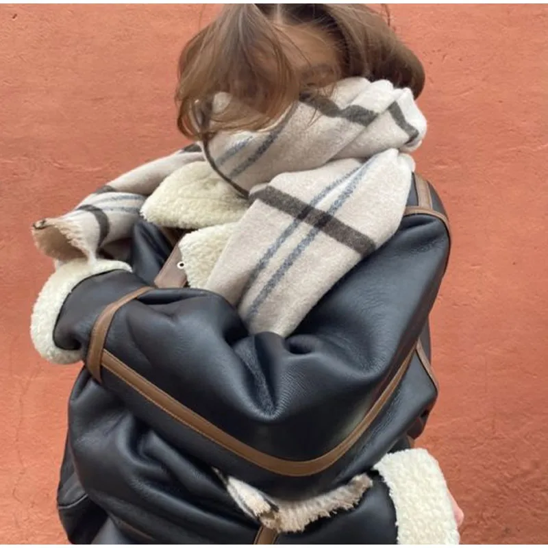 Vintage Panelled Plaid Scarf For Women 2023 Autumn Winter Thick Warm Female Shawl Fashion Casual Windproof Scarves